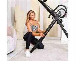 Инверсионный стол DFC IT6312A-B — это удобный и эффективный тренажёр для улучшения осанки, укрепления связок и улучшения кровообращения. Он имеет спинку чёрного цвета с валиками под голову и съёмную подушку под поясницу для дополнительного комфорта. Страховочный ремень входит в комплект, двойные валики для удобства использования.