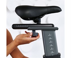 Спортивное сиденье регулируется не только по высоте и горизонтали, но и углу наклона, таким образом меняя интенсивность тренировки и положение пользователя в седле. Руль также регулируется по высоте, внося разнообразие и делая тренажёр более комфортным. Спин-байк рассчитан на пользователя весом до 130 кг.