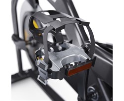 Нескользящие педали в форме стальной клетки подходят для всех размеров стопы и обеспечивают полную защиту, предотвращая скольжение и движение вперед. Они также оснащены регулируемыми ремешками для надежной фиксации. Транспортировочные колеса велосипеда облегчают его перемещение.