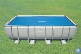 Прямоугольное термопокрывало идеально подойдет для бассейнов Intex размером 5.49 х 2.74 м. Этот тент обладает обогревающими свойствами. Соответственно, вода под ним остывает гораздо медленней, а солнечные лучи беспрепятственно через него проникают. Несмотря на сравнительно небольшую толщину обогревающего покрывала, этот предмет помогает надолго сохранить бассейн чистым. А все потому, что оно не дает грязи, песку и сухим листьям попасть на поверхность воды.
