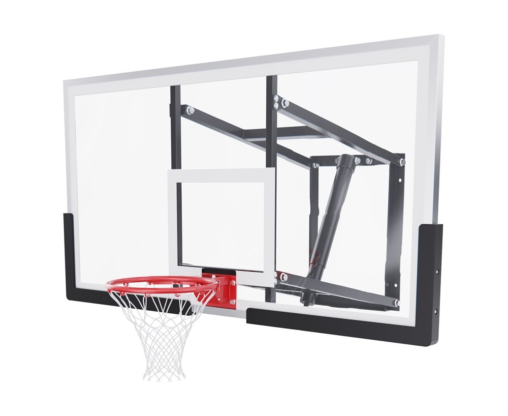 Щит изготовлен из прочного закалённого стекла толщиной 8 мм — материала, обеспечивающего отличный отскок мяча и устойчивость к ударам. Его размеры — 152 х 80 см, что делает его максимально приближенным к профессиональному оборудованию. Регулируемый вынос щита (51–55,5 см) повышает безопасность и удобство во время игры. Дополнительную безопасность обеспечивает защита Poly Pade, установленная по нижнему краю щита.