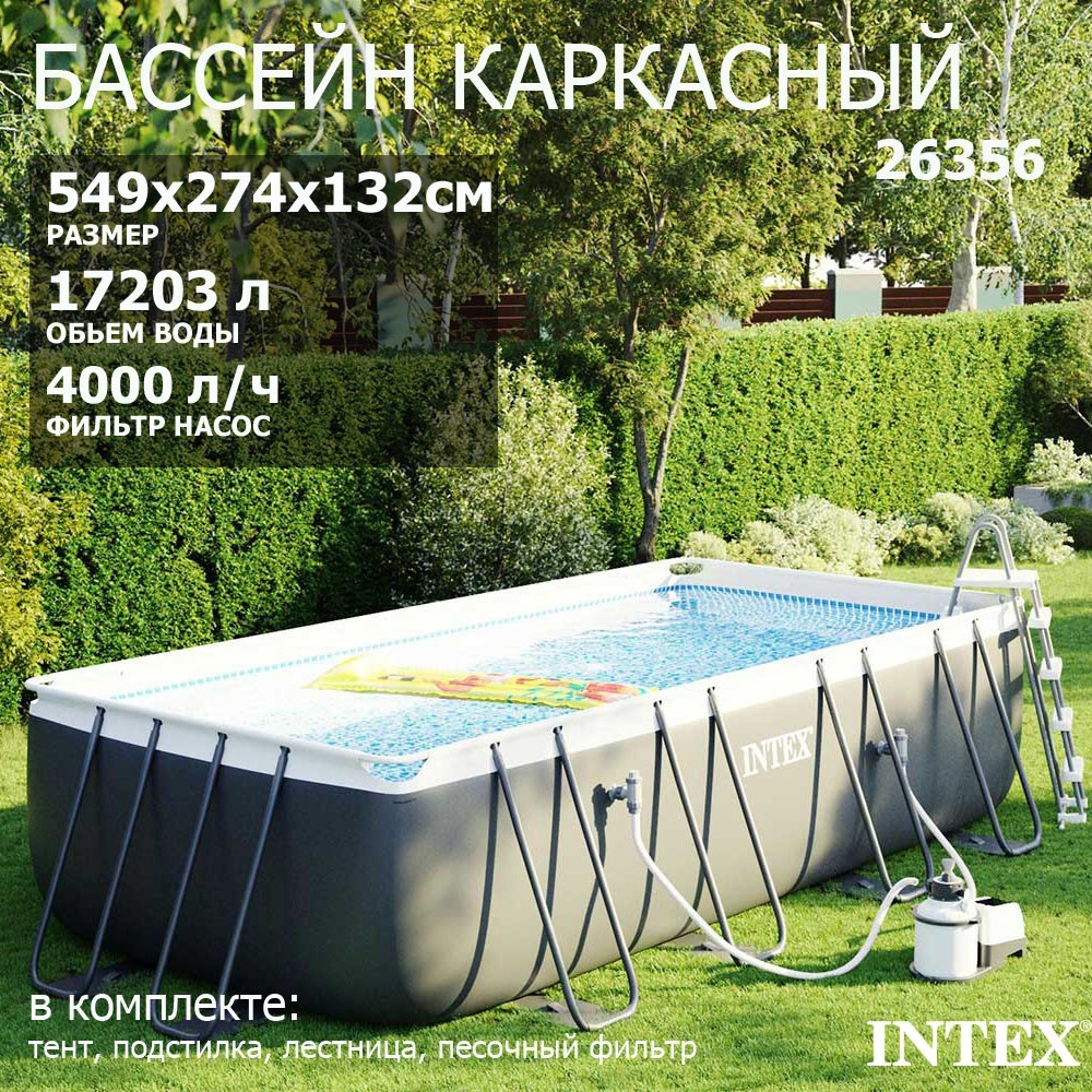 Каркасный бассейн Intex 26356 Ultra XTR Rectangular Frame + песочный насос, лестница, тент, подстилка (549х274х132см)