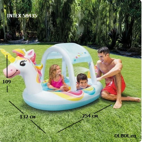 Бассейн надувной с навесом Единорог Intex 58435 (254x132x109 см)