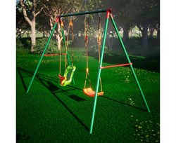 Игровой комплекс серии DFC Kids для самых маленьких, отдыхать на котором точно не будет скучно, ведь кроха сможет качаться на качелях вместе со старшим братом или сестрой — они и развлекут малыша, и присмотрят за ним, дав родителям возможность отдохнуть.