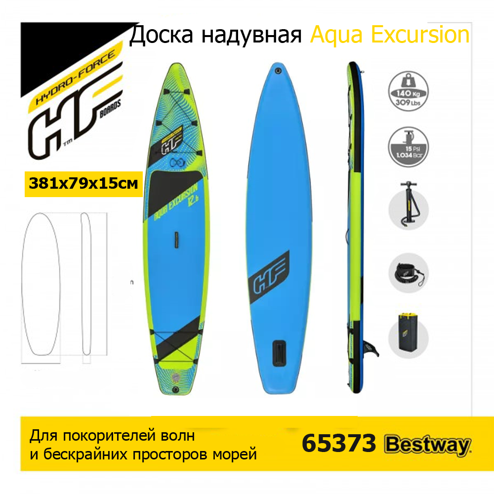 Сапборд / Доска надувная Aqua Excursion Bestway 65373 + весло, руч.насос (381x79x15см)