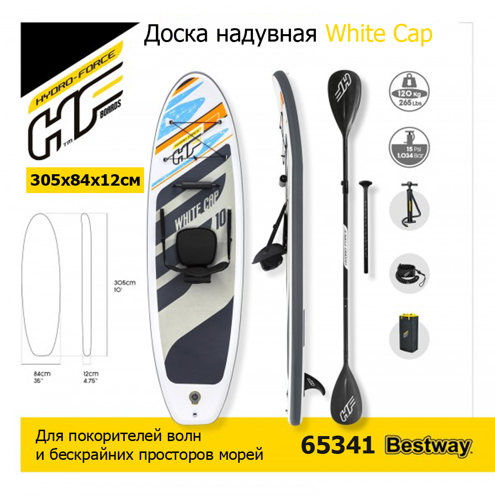 Сапборд / Доска надувная White Cap Bestway 65341 + весло, руч.насос (305x84x12см)