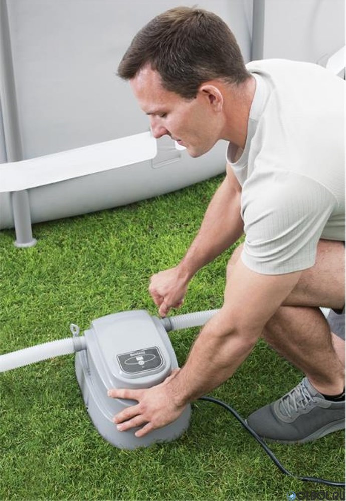 Электронагреватель BestWay 58259 - отличное решение для нагрева воды в сборных, каркасных и надувных бассейнах объемом от 1 600 до 18 000 литров. При работе нагревателя температура воды в бассейне повышается на 0,5-1,5 градусов в час. Скорость нагрева зависит от погодных условий, температуры воздуха и воды. Для повышения эффективности устройства рекомендовано оснастить бассейн специальным теплосберегающем тентом. Максимальная температура нагрева воды составляет 40°С. Подходит для песочных и картриджных фильтров.