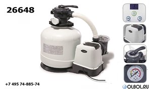 Песочный фильтр+хлоргенератор Intex 26676 предназначен для механической очистки воды в бассейне. В качестве фильтрующего элемента используется специально просеянный кварцевый песок (0,45-0,85 мм). Песочный+хлоргенератор Intex 26676 комплектуется фильтром цилиндрической формы (360 мм), насосом, шестипозиционным клапаном переключения режимов работы, манометром для индикации давления в системе.
