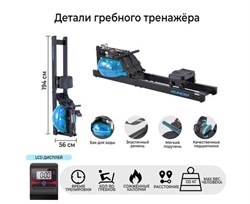 Гребной тренажер DFC Runow 6204 выполнен в чёрном цвете и предназначен для пользователей весом до 125 килограмм. Тренажер компактен и может быть установлен вертикально у стены.