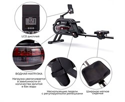 Особенностью данного тренажера является использование водной системы нагрузки с шестью уровнями регулировки. Объем водного бака составляет 13 литров, что достаточно для продолжительной тренировки.