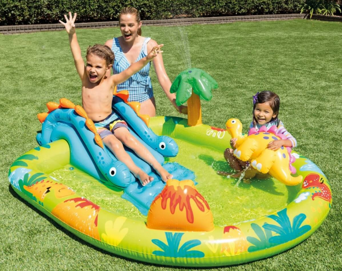 Игровой центр-бассейн Динозавр Intex 57166 имеет все необходимое для купания и игр Ваших малышей в жаркие летние дни. Он снабжен горкой для спуска в воду, мини-бассейном и водным фонтаном в виде зеленого дерева. Эту композицию прекрасно дополняет красивая надувная игрушка: маленький динозавр. Все материалы, используемые для производства бассейна отличаются прочностью и устойчивостью, чтобы обеспечить вашему ребенку веселый и безопасный отдых.