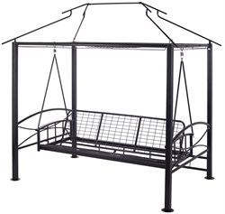 Почти двухметровый диван беседки позволяет с комфортом разместить компанию из четырех взрослых, при этом, максимальная нагрузка составляет 300 кг;