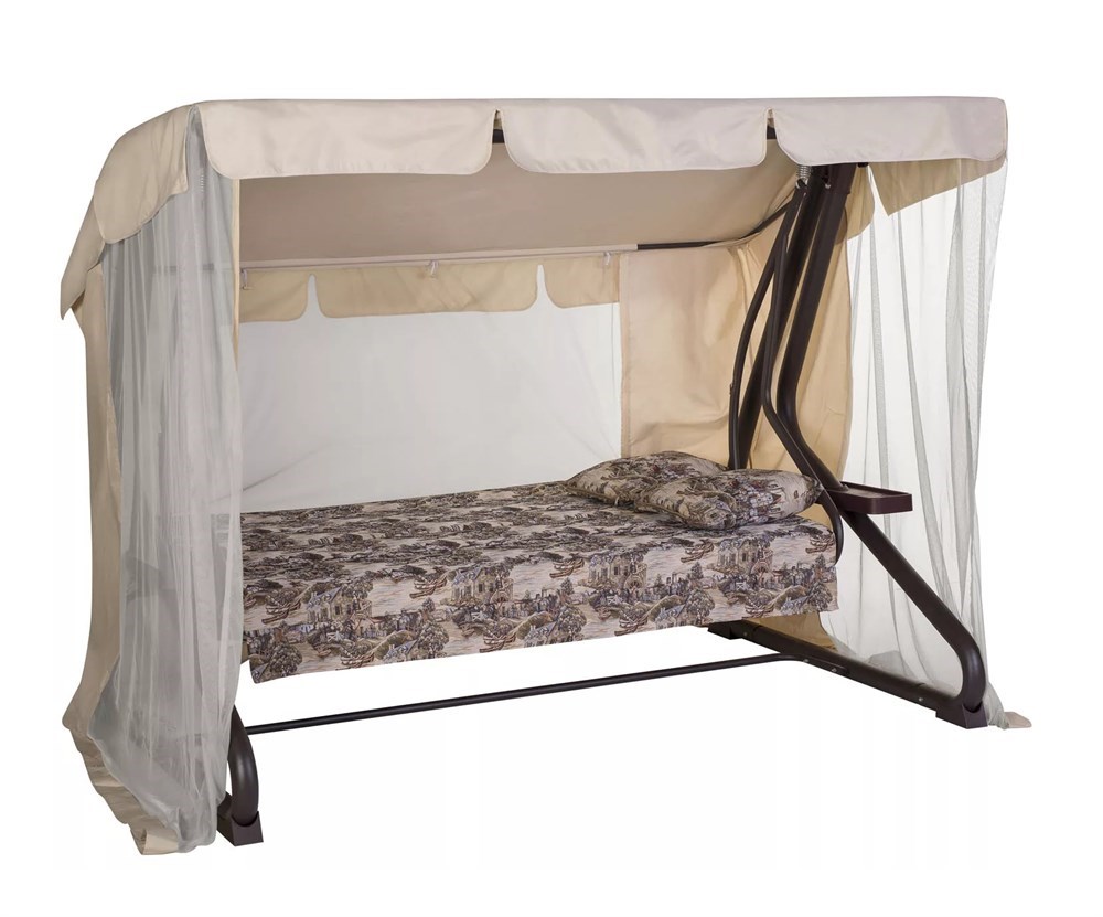 Премиальная модель садовых качелей «Валенсия». Качели рассчитаны на четыре посадочных мета, комплектуются подголовником и подушками, тентом с антимоскитной сеткой. Модель полностью раскладывается в полноценное спальное место, которое фиксируется и принимает полностью статичное положение, тем самым принимает полностью статическое положение, тем самым обеспечивая безопасность во время отдыха и сна. Каркас выполнен из стальной трубы 63,5 диаметра, с полимерным порошковым покрытием «AkzoNobel».
