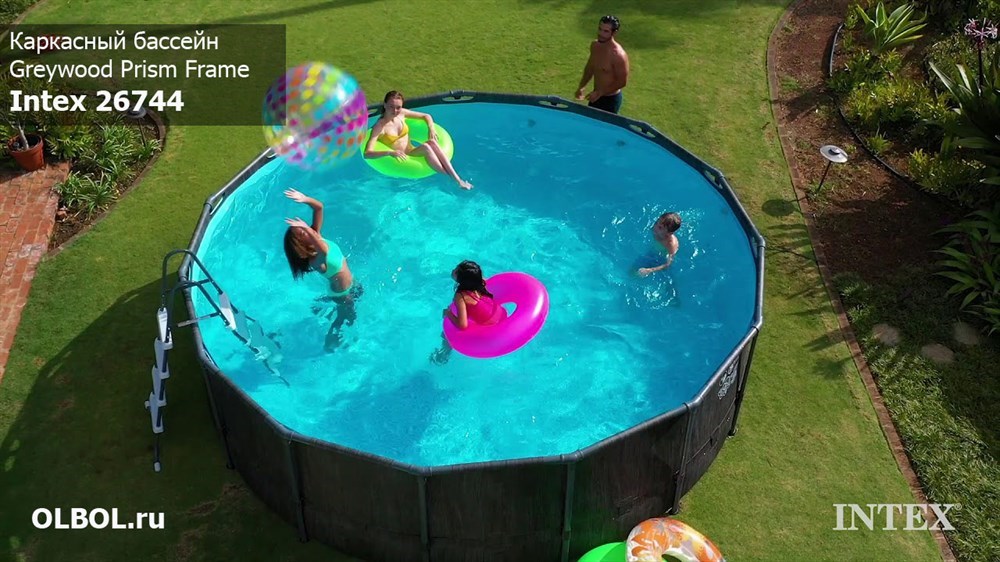 Каркасный бассейн Intex 26744, с оригинальной расцветкой гармонично впишется на ваш приусадебный участок.