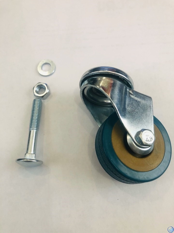 Колеса с термоэластичной шиной серого цвета предназначены для перемещения различных грузов преимущественно внутри помещений с хорошими полами. Используются в медицинских учреждениях, гостиничных комплексах, супермаркетах, предприятиях общественного питания, торговых залах и т.д. Колеса с термоэластичной шиной имеют полипропиленовый обод, закрытый с двух сторон стальными колпачками. В оси колеса втулка скольжения. Их отличительной особенностью являются плавность хода низкий уровень издаваемых при движении шумов, а также бережное отношение к поверхности пола и высокая маневренность.