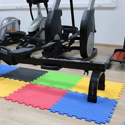 Данный мат будет отличной защитой вашего напольного покрытия от различных повреждений, которые могут возникнуть при исользовании тренажеров. Так же мат обладает шумопоглощающим эффектом, он устраняет шум, создавая наилучшие условия для тренировки.