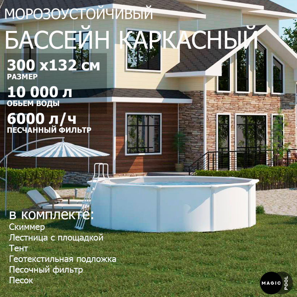 Морозоустойчивый бассейн MAGIC POOL / 300х132 см / скиммер, тент, подложка, песочный фильтр / цвет белый / KITPR301