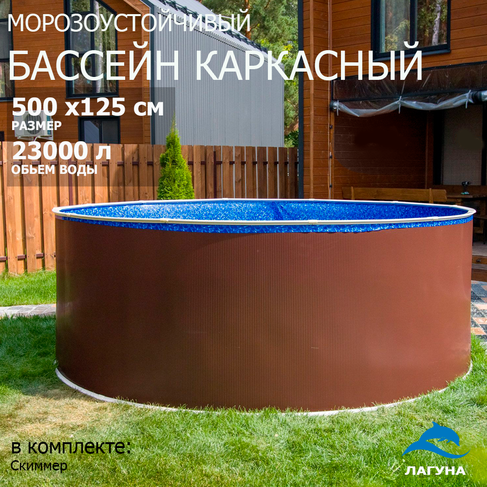 Морозоустойчивый бассейн Лагуна 5,0 х 1,25м- коричневый, пленка мрамор 0/4 мм / +скиммер