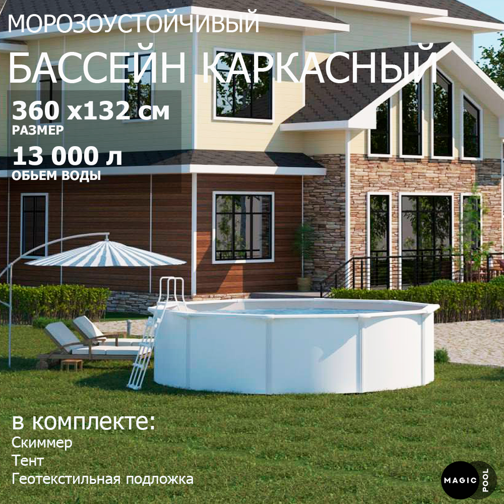 Морозоустойчивый бассейн MAGIC POOL / 360х132 см / скиммер, тент, подложка / цвет белый / PR3613
