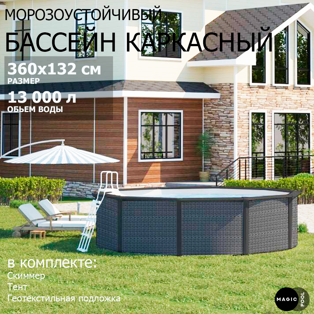 Морозоустойчивый бассейн MAGIC POOL / 360х132 см / скиммер, тент, подложка / цвет ротанг / PR3613R
