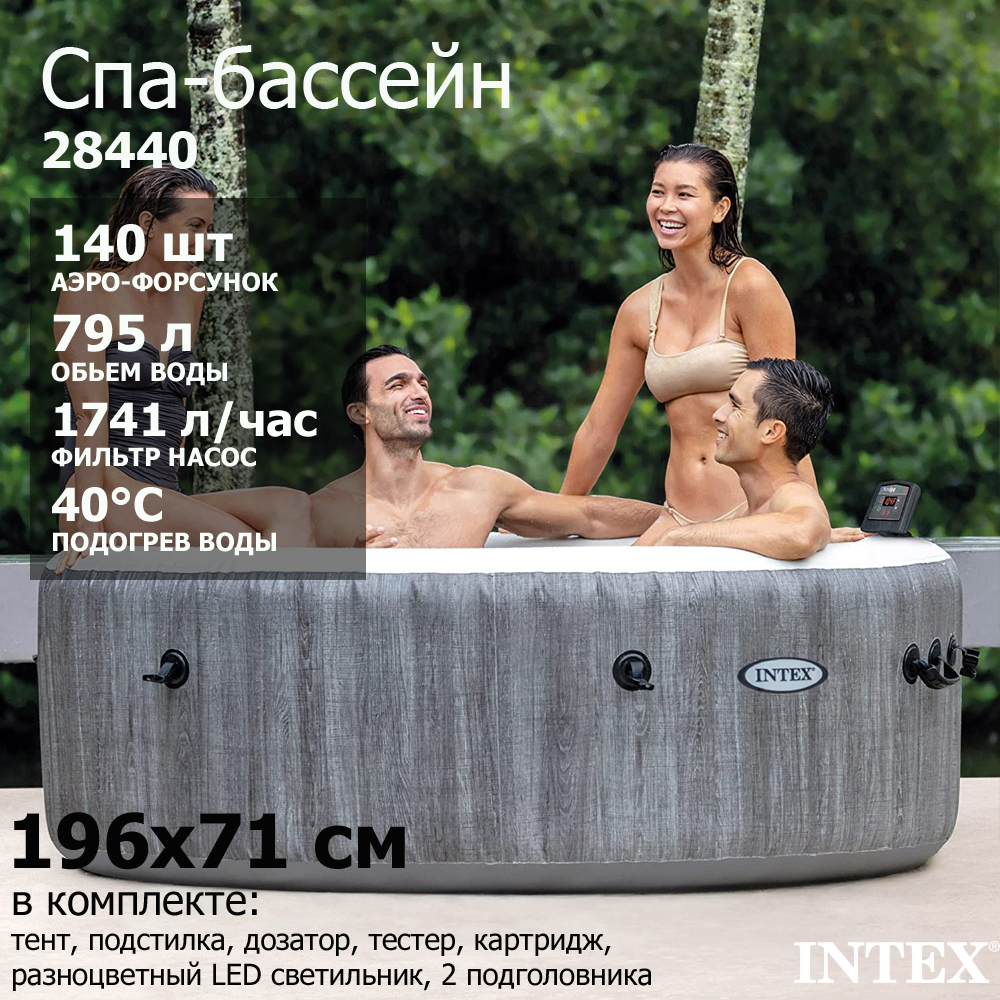 Надувное джакузи Intex GreyWood Deluxe Intex 28440- уникальный спа бассейн с аэромассажем (массаж пузырьками воздуха). Он выдержан в благородных серых тонах и стильно дополнит ваш загородный участок.