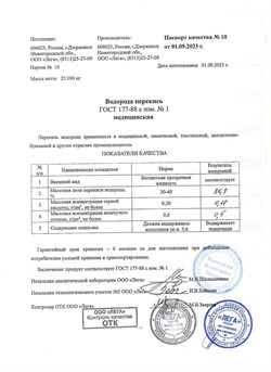 - Состав: перекись водорода ГОСТ 177-88 марка А (ПВ) 30-40% в качестве действующего вещества.