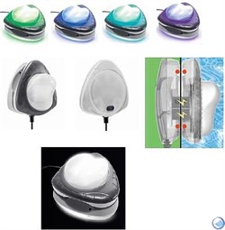 Яркая светодиодная магнитная лампа Intex 28698 для бассейнов. Использование низкого напряжения теперь позволяет току течь даже через покрытие стен бассейна. Таким образом, теперь вы можете удобно обеспечить бассейн лампой без использования инструментов и структурных изменений в бассейне при помощи магнитного передатчика в любом месте вашего бассейна, даже под водой. Ток течет легко от передатчика через покрытие к светодиодной лампе. Использование светодиодных ламп в бассейне абсолютно безвредно. Подключение через внешнюю 220-вольтовую розетку, не требуется аккумуляторов или батарей. Не подходит для использования в бассейнах с металлическими стенками! Покупка настенного светильника Intex 28698 является прекрасным решением для освещения бассейна.