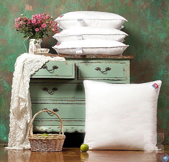 Высота и упругость подушки позволяют оптимально скорректировать ее положение под головой. В качестве наполнителя используется гусиный пух второй категории, который не нужно взбивать, он превосходно сохраняет свою упругость, не сминается, быстро возвращается в исходный объем.