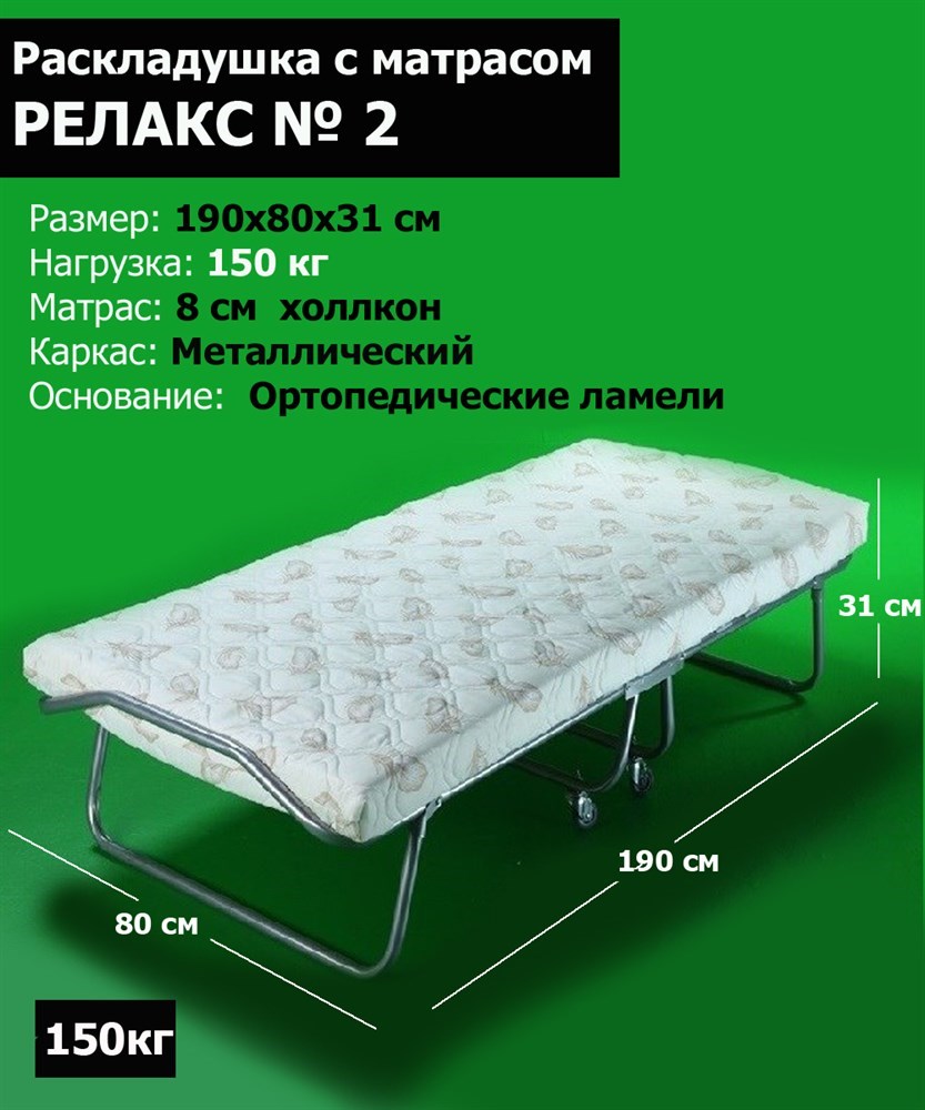 Характеристики раскладушки с матрасом Релакс 2 (190х80х38см)