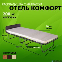 Раскладушка с матрасом ОТЕЛЬ Комфорт (200x90x43см) ВЕНГЕ, ОРЕХ, ДУБ - металл. колеса
