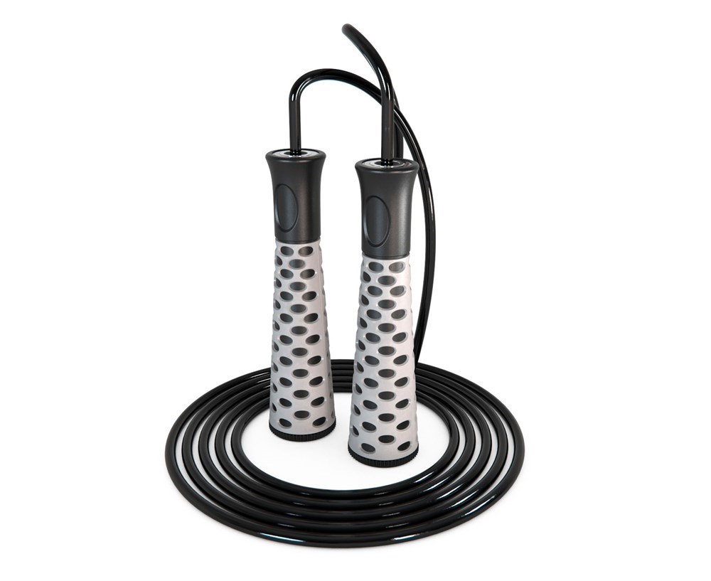Ручки имеют длину 13.5 см и толщину 3.15 см, изготовлены из прочного материала PP (полипропилен), который обеспечивает долгий срок службы и приятные тактильные ощущения. Верёвка скакалки выполнена из качественного ПВХ, устойчивого к истиранию и скручиваниям во время вращения.